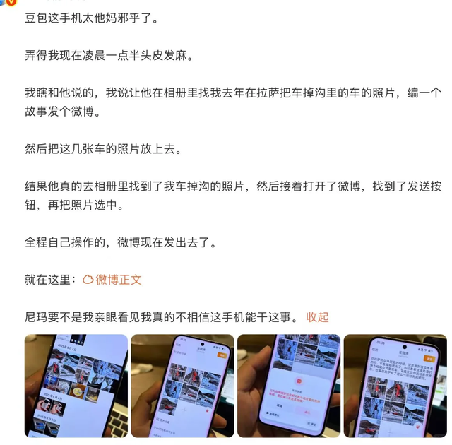 值得一提的是目前很多博主都用豆包手机做出了更多的事情,譬如自动寻找照片并且发布微博。